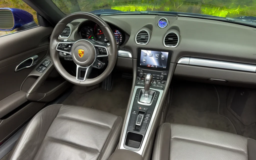Porsche Boxster сочетает дерзкий дизайн с безупречным вкусом. Салон обшит высококачественной кожей, дополнен цифровыми технологиями и фирменными элементами управления, которые делают каждую поездку не только комфортной, но и истинным удовольствием.